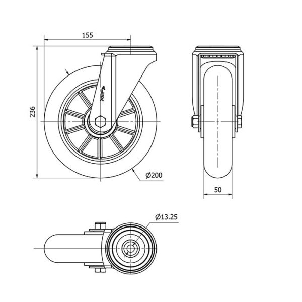 Rueda poliuretano giratoria Alex diametro 200 mm. modelo 2-4398