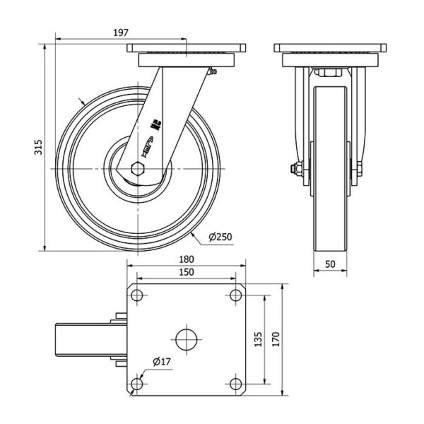 Rueda poliuretano giratoria Alex diametro 250 mm. modelo 2-1755 EAN 8422202217550