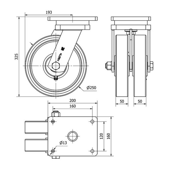 Rueda poliuretano giratoria Alex diametro 250 mm. modelo 2-1867