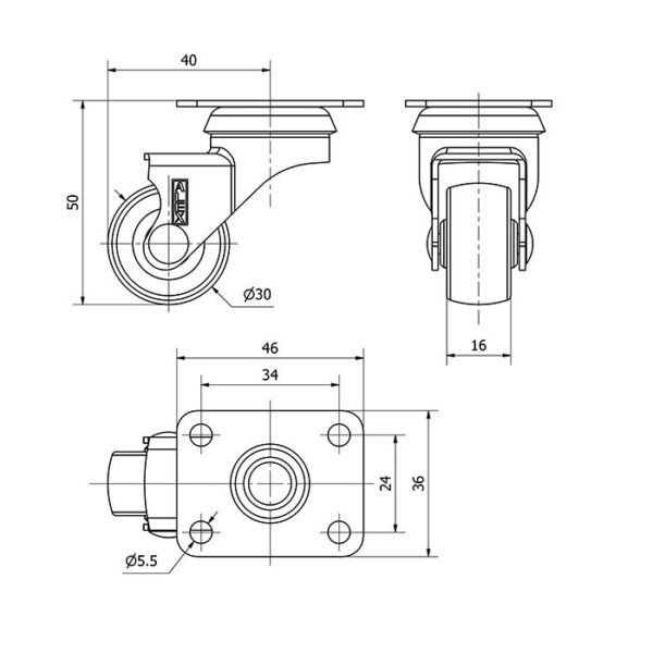 Rueda poliuretano giratoria Alex diametro 30 mm. 1-0742