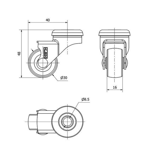 Rueda poliuretano giratoria Alex diametro 30 mm. modelo 1-0746