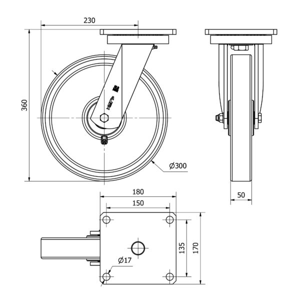 Rueda poliuretano giratoria Alex diametro 300 mm. modelo 4-1230