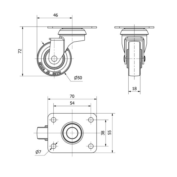 Rueda poliuretano giratoria Alex diametro 50 mm. 2-2565