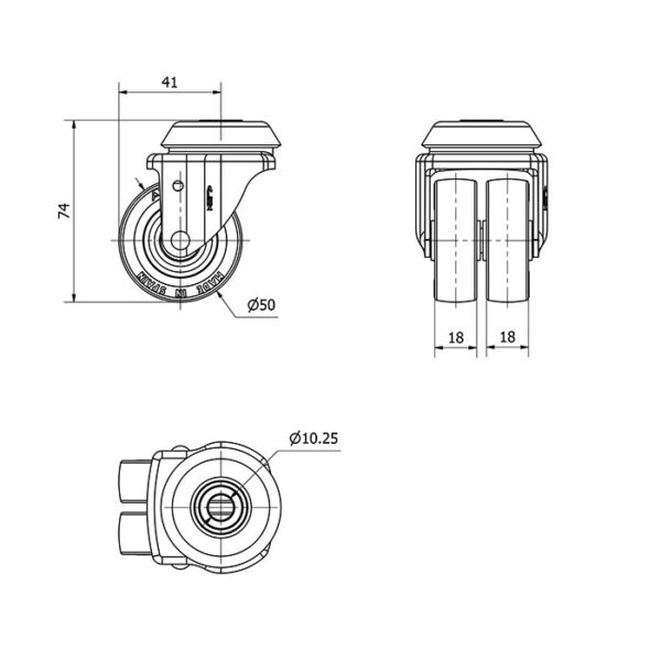 Rueda poliuretano giratoria Alex diametro 50 mm. modelo 1-0792