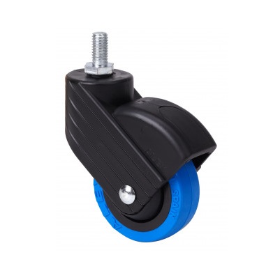 Ruedas de poliuretano inyectado azul, especialmente indicadas para soportar cargas de hasta 30 Kg.