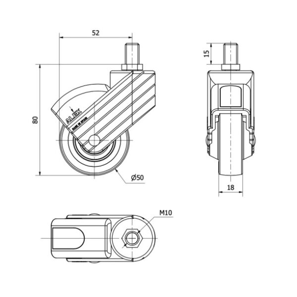 Rueda poliuretano giratoria Alex diametro 80 mm. 1-0802