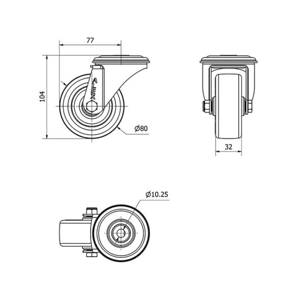 Rueda poliuretano giratoria Alex diametro 80 mm. modelo 2-2858