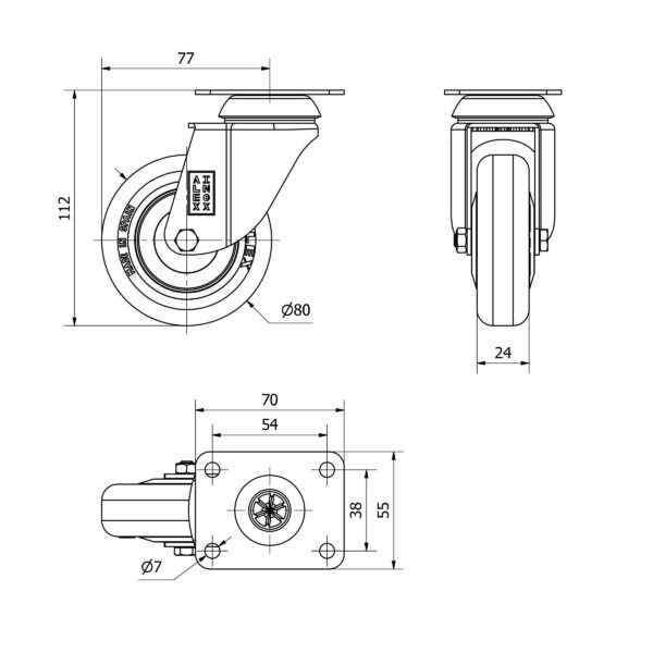Rueda poliuretano giratoria Alex diametro 80 mm. modelo 2-3049