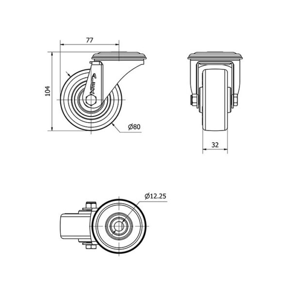 Rueda poliuretano giratoria Alex diametro 80 mm. modelo 2-4075