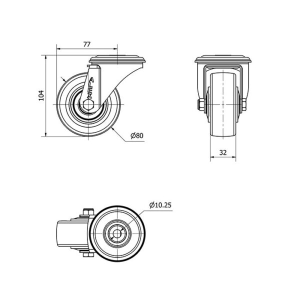 Rueda poliuretano giratoria Alex diametro 80 mm. modelo 2-4204
