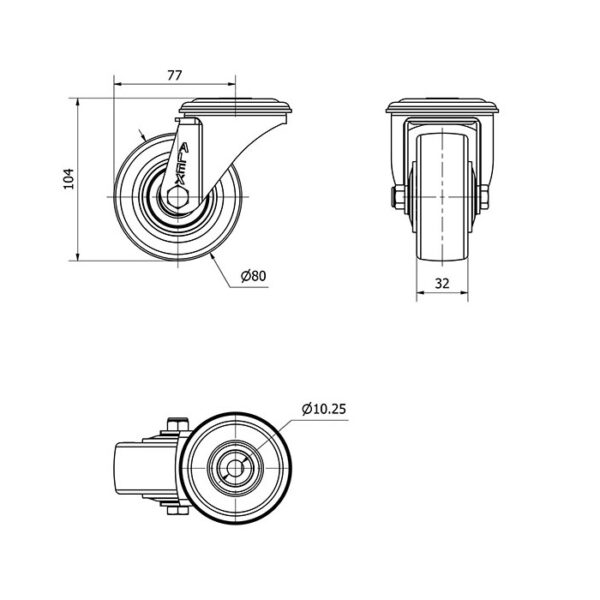 Rueda poliuretano giratoria Alex diametro 80 mm. modelo 2-4224