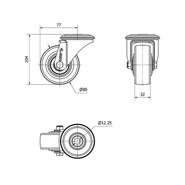 Rueda poliuretano giratoria Alex diametro 80 mm. modelo 2-4245