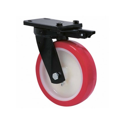 Las ruedas Alex serie HLB-PO son ruedas con el núcleo de nylon blanco y banda de poliuretano rojo dureza 90-95º shore A, indicadas para soportar altas cargas de hasta 600 Kg. Se utilizan en útiles de transporte logístico, gradas móviles, maquinaria pesada, plataformas elevadoras grúas móviles y servicios públicos. PO: funcionamiento elástico y silencioso. Ofrece gran protección de los suelos. Silenciosa. Gran duración al desgaste.