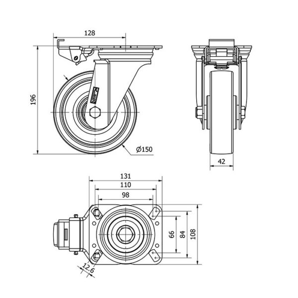 Rueda poliuretano giratoria con bloqueo direccional Alex diametro 150 mm. modelo 2-3784 EAN 8422202237848