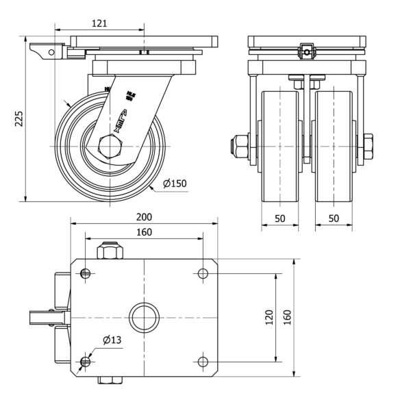 Rueda poliuretano giratoria con bloqueo direccional Alex diametro 150 mm. modelo 2-3828 EAN 8422202238289