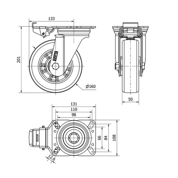 Rueda poliuretano giratoria con bloqueo direccional Alex diametro 160 mm. modelo 2-3927