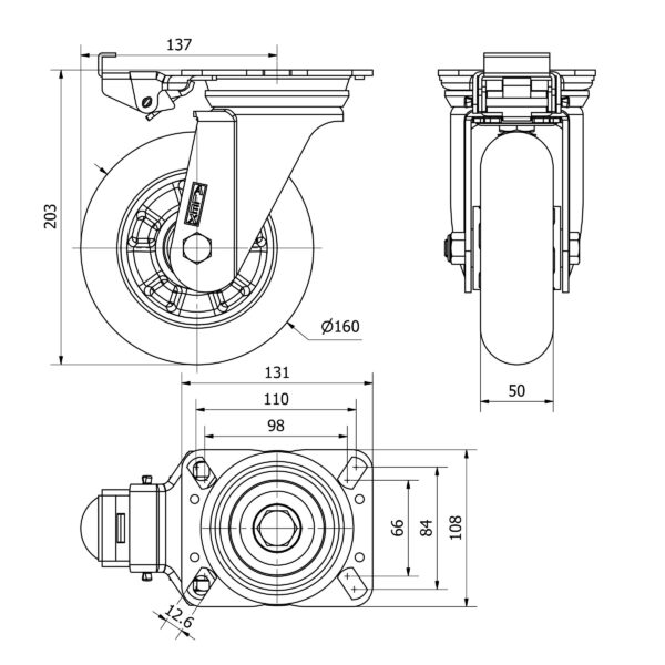 Rueda poliuretano giratoria con bloqueo direccional Alex diametro 160 mm. modelo 2-3969 EAN 8422202239699