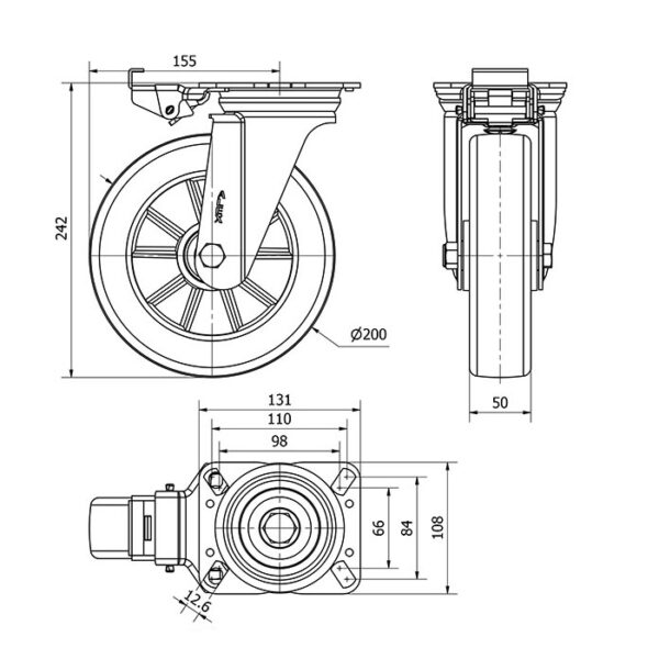 Rueda poliuretano giratoria con bloqueo direccional Alex diametro 200 mm. 2-3695