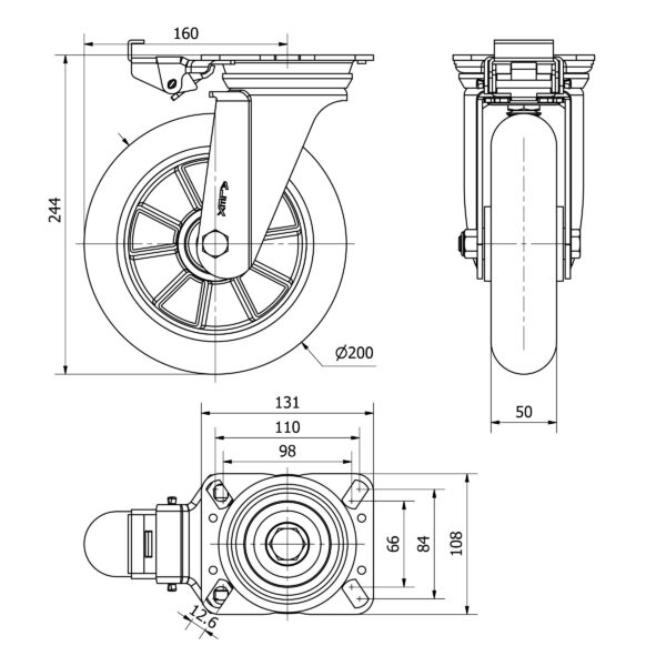 Rueda poliuretano giratoria con bloqueo direccional Alex diametro 200 mm. modelo 2-4387