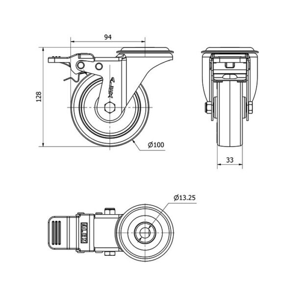 Rueda poliuretano giratoria con freno Alex diametro 100 mm. modelo 2-1656 EAN 8422202216560