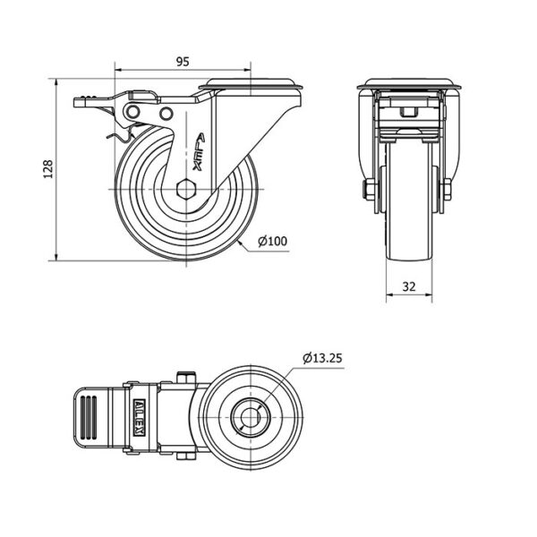 Rueda poliuretano giratoria con freno Alex diametro 100 mm. modelo 2-2927