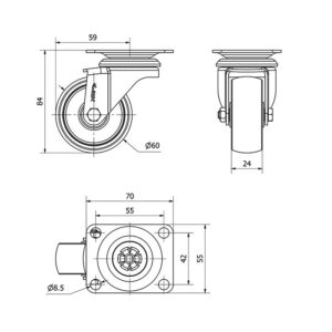 La serie de ruedas Alex BHI INOX-PPI son de poliuretano inyectado, con todos sus componentes de acero inoxidable (AISI-304), indicadas para soportar cargas hasta 80 Kg. Se utilizan en exteriores, carros de transporte de alimentación, cantinas, comedores y restaurantes. PPI: Silenciosa e indeformable y de fácil desplazamiento con carga.