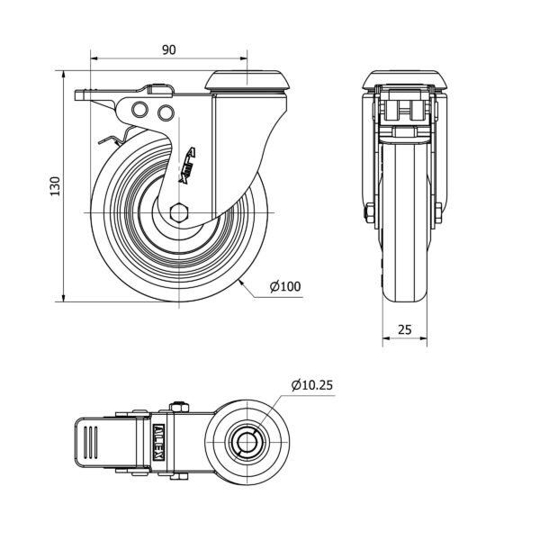 Rueda poliuretano giratoria con freno Alex diametro 100 mm. modelo 2-3058