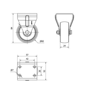 Rueda poliuretano giratoria con freno Alex diametro 100 mm. modelo 2-3099