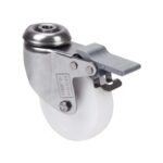 La serie de ruedas Alex ZLI INOX-POL son de poliuretano inyectado, con todos sus componentes de acero inoxidable (AISI-304), indicadas para soportar cargas hasta 130 Kg. Se utilizan en exteriores, carros de transporte de alimentación, cantinas, comedores, restaurantes, empresas de alimentación, máquinas de embalajes, cintas transportadoras, maquinas ligeras para la construcción, granjas avícolas, mataderos, cárnicas, lácteas y químicas. POL: Gran duración sin desgaste. Alta resistencia a los aceites y grasas. Silenciosas, limpias e indeformables.
