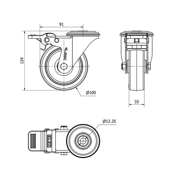 Rueda poliuretano giratoria con freno Alex diametro 100 mm. modelo 2-4159