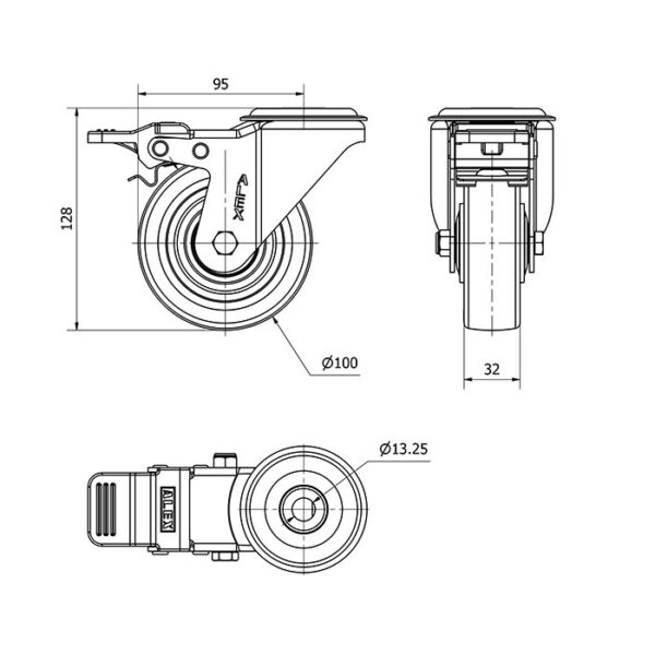 Rueda poliuretano giratoria con freno Alex diametro 100 mm. modelo 2-4235 EAN 8422202242354