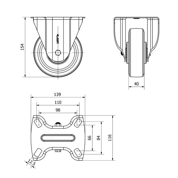 Rueda poliuretano giratoria con freno Alex diametro 125 mm. modelo 2-3714