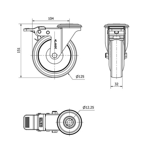 Rueda poliuretano giratoria con freno Alex diametro 125 mm. modelo 2-4882