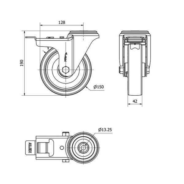 Rueda poliuretano giratoria con freno Alex diametro 150 mm. modelo 2-2444