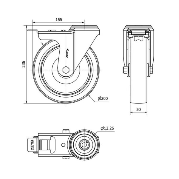 Rueda poliuretano giratoria con freno Alex diametro 200 mm. 2-1659