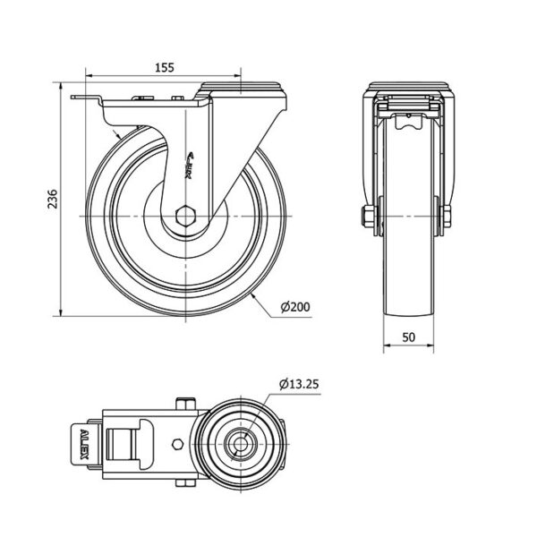 Rueda poliuretano giratoria con freno Alex diametro 200 mm. modelo 2-3335