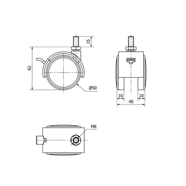 Rueda poliuretano giratoria con freno Alex diametro 50 mm. modelo 1-0646 EAN 8422202106465 n nHOJA TECNICA n nLa serie de ruedas Alex DK-DK poliuretano son ruedas de poliuretano, indicadas para soportar cargas hasta de 50 kg. Se utilizan en expositores, muebles, equipos de belleza y peluquería, sillas de oficina, taburetes, percheros, fotocopiadoras, ebanisterías, útiles de hospitales, mobiliario clínico sanitario, porta goteros, goteros, canapés, cubos de basura. DK cromada-latonada: Ligera y resistente. Buena capacidad de carga.