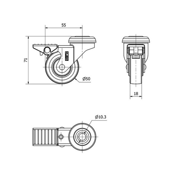 Rueda poliuretano giratoria con freno Alex diametro 50 mm. modelo 1-0754