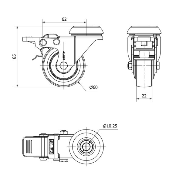 Rueda poliuretano giratoria con freno Alex diametro 60 mm. modelo 2-4513