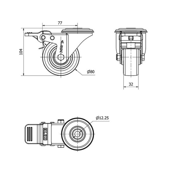 Rueda poliuretano giratoria con freno Alex diametro 80 mm. modelo 2-4165
