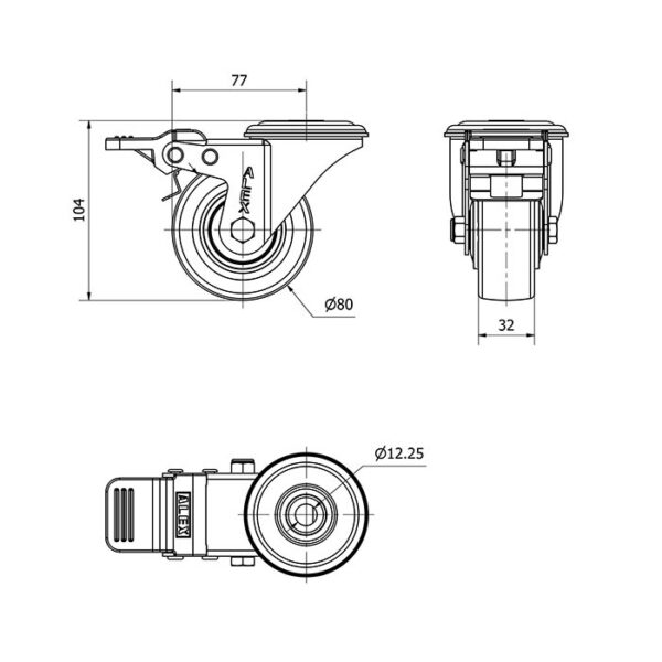 Rueda poliuretano giratoria con freno Alex diametro 80 mm. modelo 2-4242
