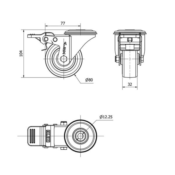Rueda poliuretano giratoria con freno Alex diametro 80 mm. modelo 2-4697
