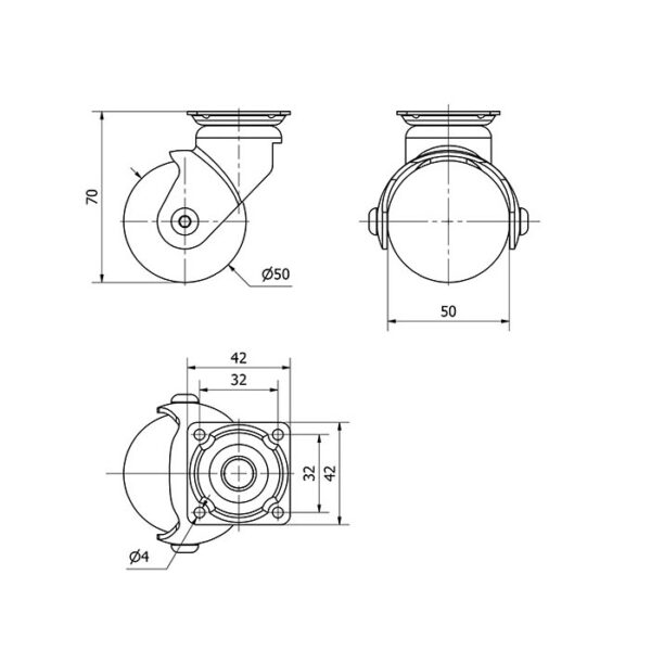 Rueda PVC giratoria Alex diametro 50 mm. modelo 1-0510
