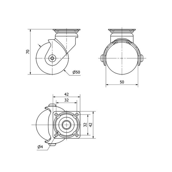 Rueda PVC giratoria Alex diametro 50 mm. modelo 1-0586