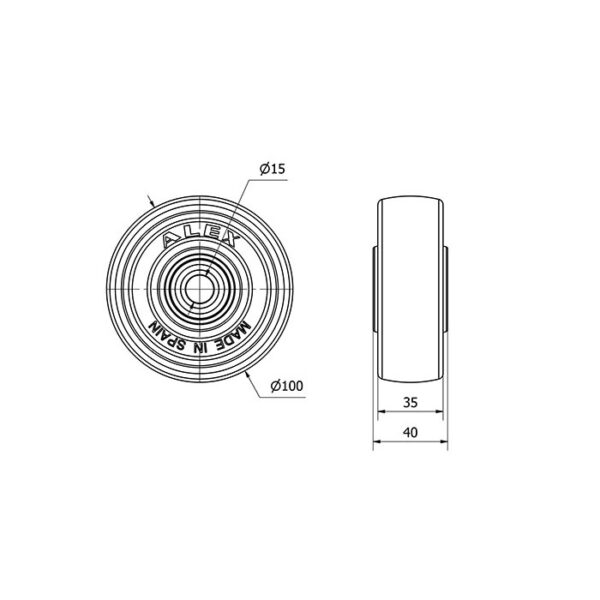 Rueda resina fenolica aro suelto Alex diametro 100 mm. modelo 2-4763 EAN 8422202247632