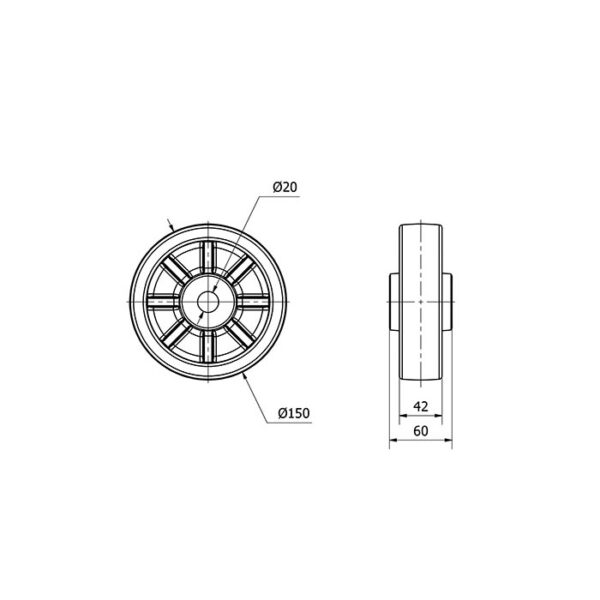 Rueda resina fenolica aro suelto Alex diametro 150 mm. modelo 2-0066