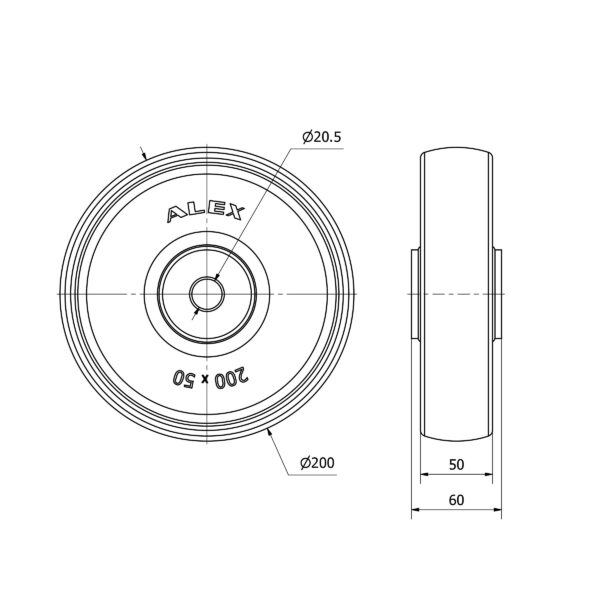 Rueda resina fenolica aro suelto Alex diametro 200 mm. modelo 2-4002