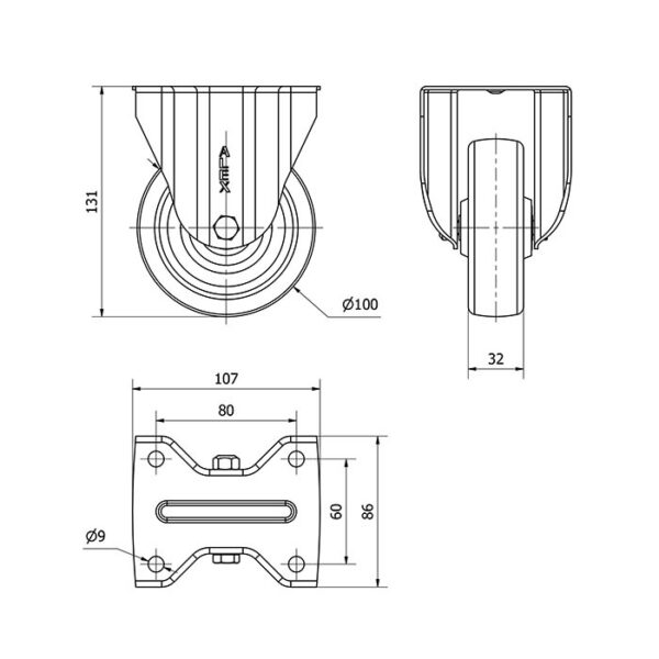 Rueda resina fenolica fija Alex diametro 100 mm. modelo 2-1719