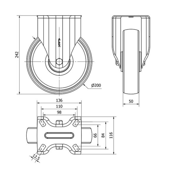 Rueda resina fenolica fija Alex diametro 200 mm. modelo 2-4007 EAN 8422202240077