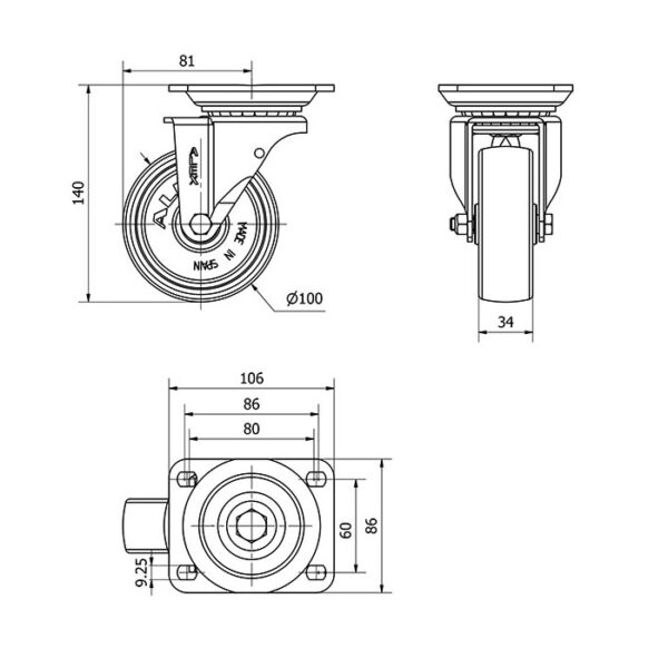 Rueda resina fenolica giratoria Alex diametro 100 mm. modelo 2-1058